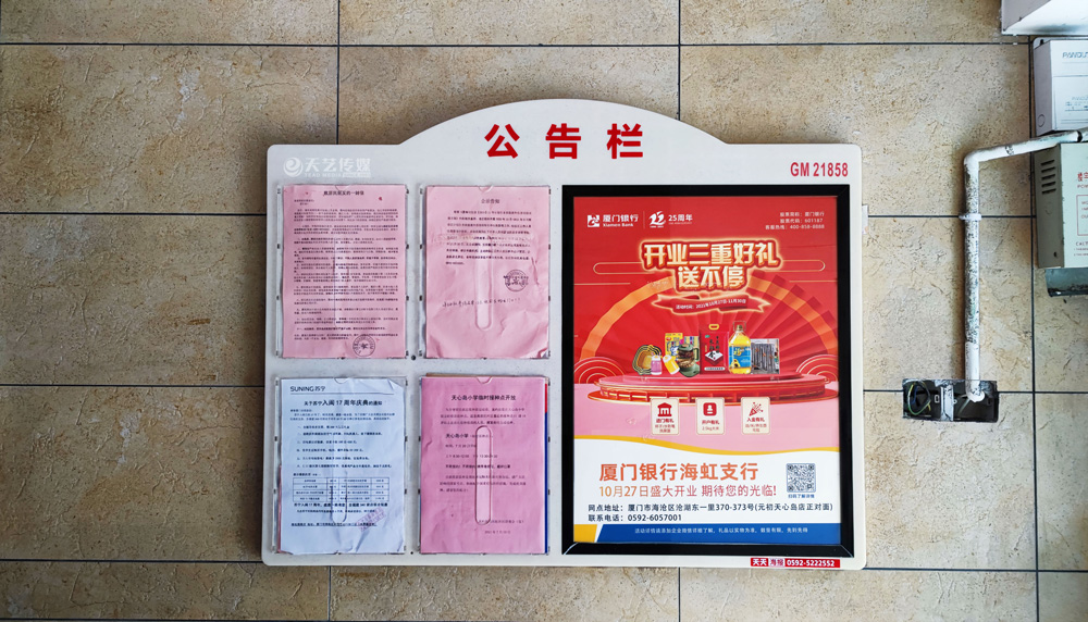 此次廈門(mén)銀行海虹支行選擇與天藝傳媒進(jìn)行戶外媒體投放的合作,投放海滄區(qū)(以海滄的生活區(qū)、海虹支行周邊區(qū)域?yàn)橹?的多個(gè)戶外廣告媒體,包括公交候車(chē)亭媒體、電梯框架廣告、社區(qū)公告欄媒體及社區(qū)出入口的道閘媒體等。