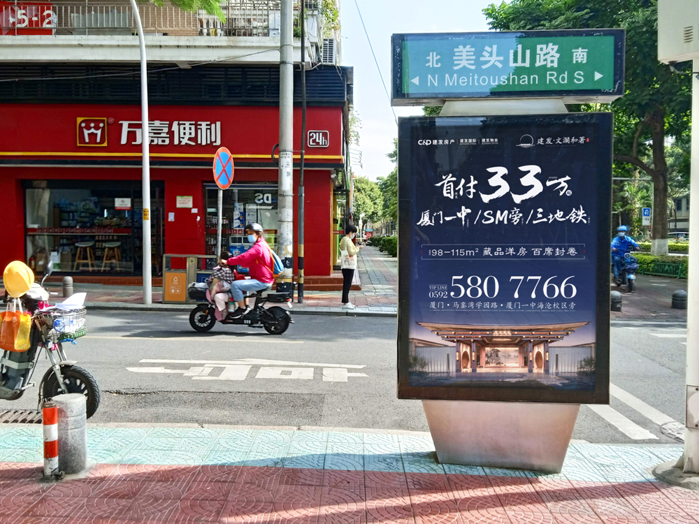 本次建發(fā)文瀾和著二期樓盤再次與天藝傳媒攜手,共同續(xù)寫輝煌。建發(fā)文瀾和著二期開盤,再次選擇投放戶外城市路名牌超過100座,且均在島內黃金點位覆蓋,包括主干道,如:廈禾路、體育路、金尚路、湖濱中路、禾祥西路、禾祥東路等車流人流密集路段,以及商超圈周邊路段,如:火車站羅賓森、思北路口、輪渡周邊。