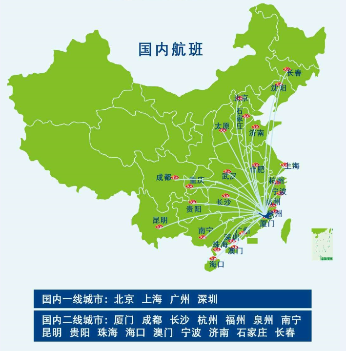 航線遍布除了北京、上海、廣州、深圳等一線城市