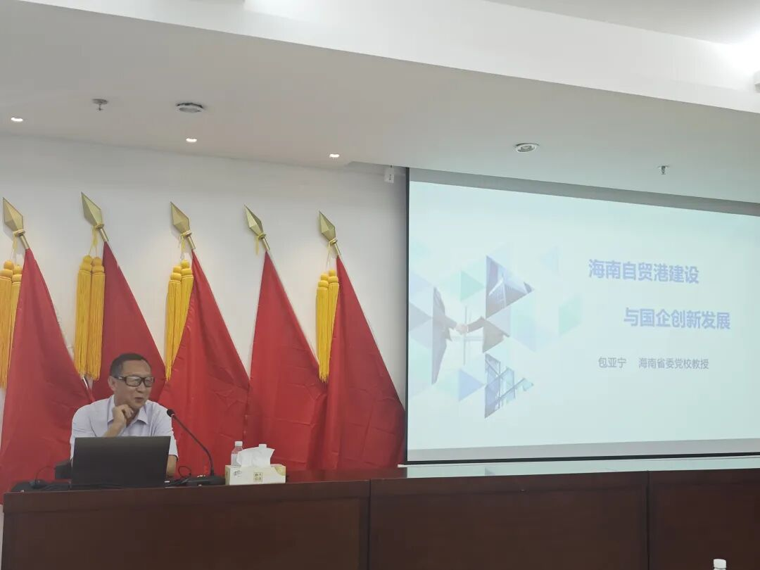 本次培訓邀請原海南省委黨校副校長、海南大學碩士生導師包亞寧教授做專題授課。包教授圍繞“全面準確理解國有企業(yè)在自貿港建設中的功能與作用”“‘封關’政策制度體系推進于社會生活的機遇與挑戰(zhàn)”“充分認識自貿港建設的走勢,不斷提升企業(yè)的競爭發(fā)展能力”等內容開展闡釋,并引入多個企業(yè)實例,不僅讓廣大干部職工對自貿港政策的理解更透徹,也為后續(xù)謀劃 “十五五”時期高質量發(fā)展工作筑牢了基礎。